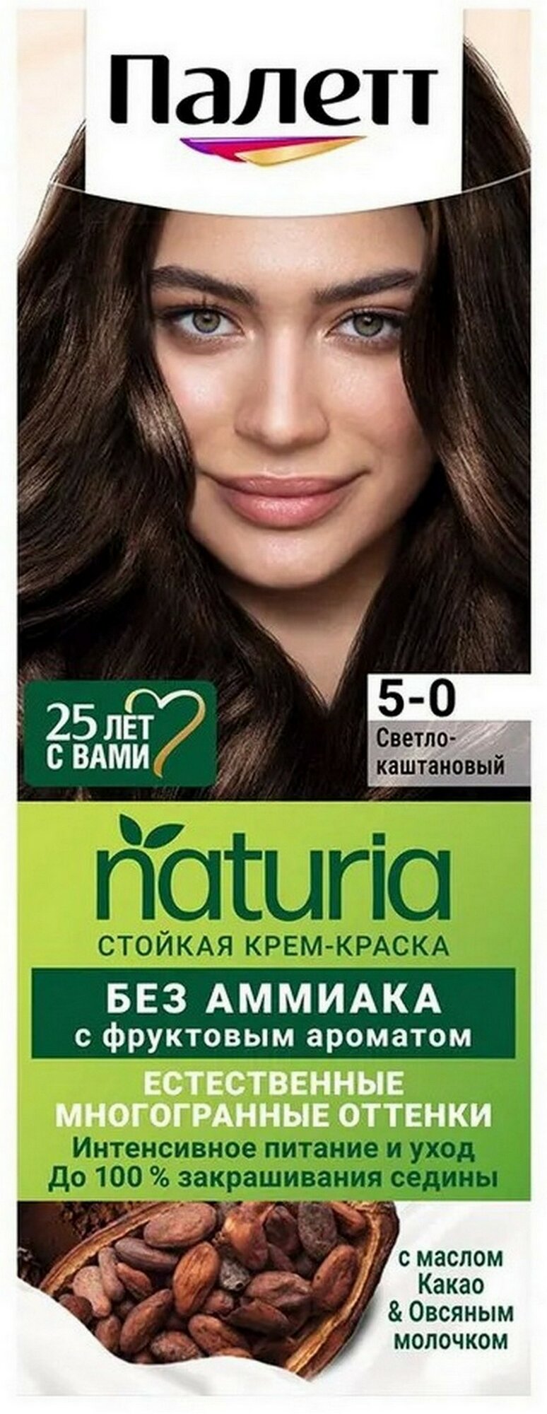 Палетт Naturia Стойкая крем-краска для волос, 5-0 светло-каштановая, 110 мл - 1 шт