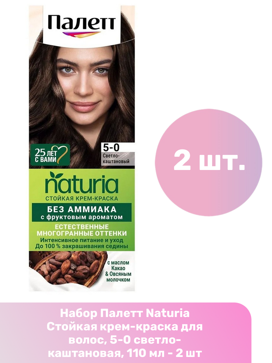 СохранитьПалетт Naturia Стойкая крем-краска для волос, 5-0 светло-каштановая, 110 мл - 2 шт интересное: