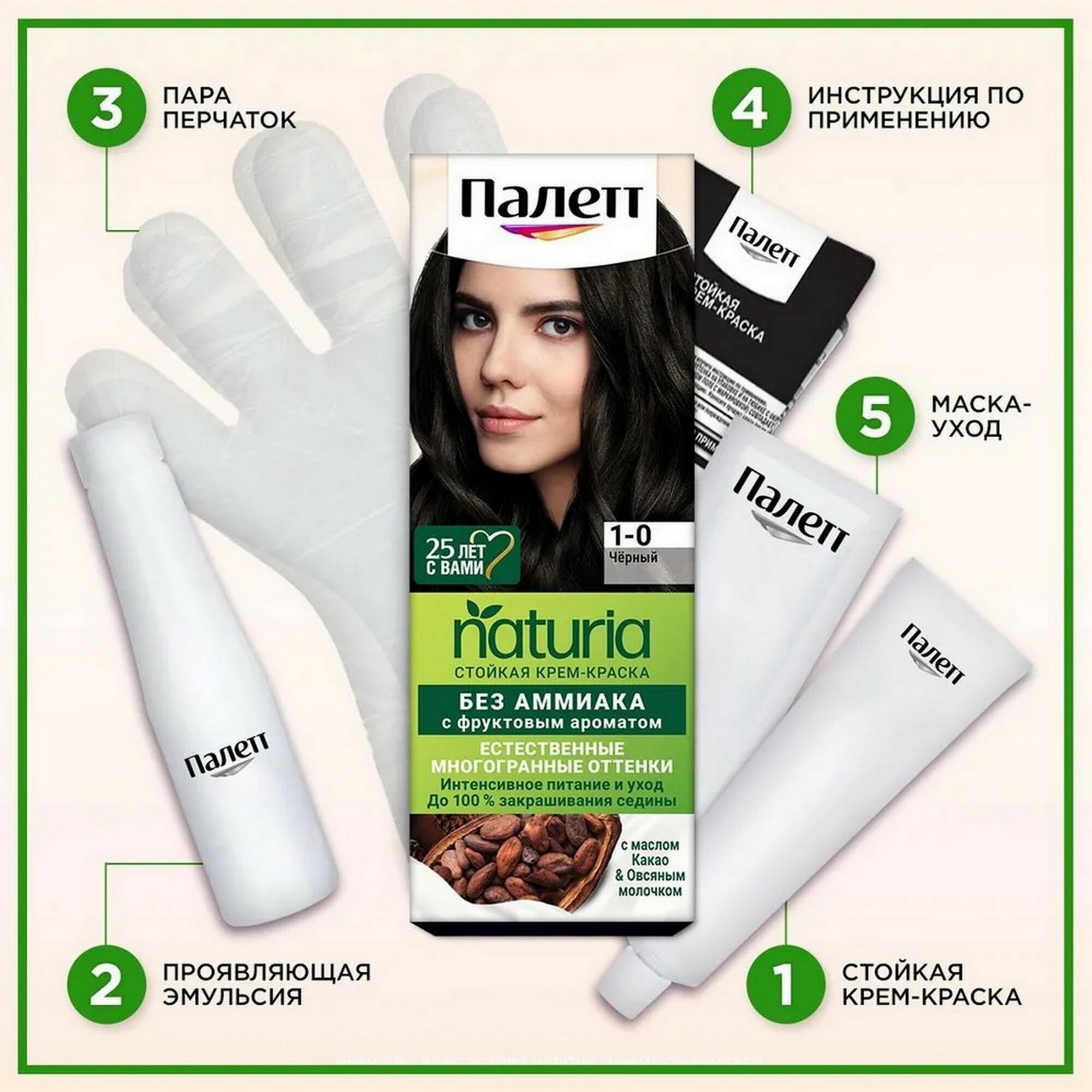 Купить Палетт Naturia Стойкая крем-краска для волос, 1-0 Черный, 110 мл - 6 шт