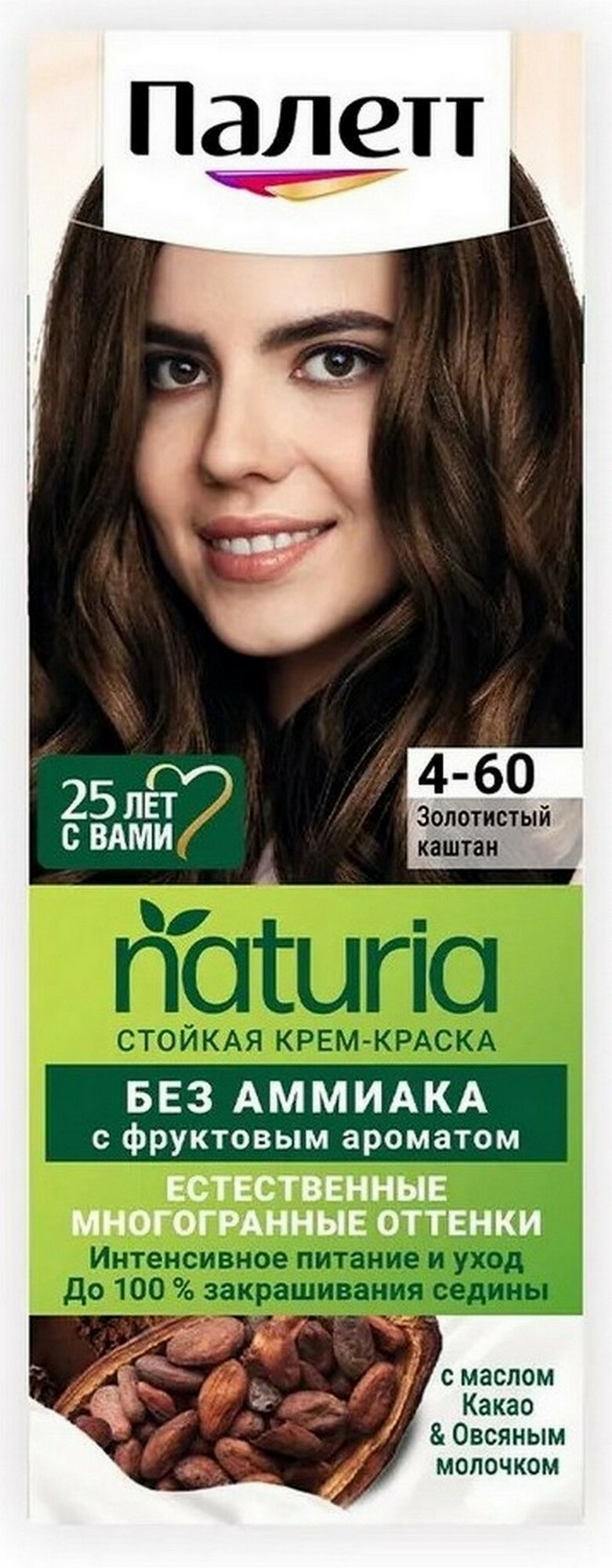 Стойкая крем-краска Палетт Naturia 4-60 Золотистый каштан, 110мл