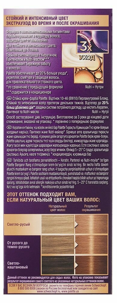 СохранитьПалетт Стойкая крем-краска Интенсивный цвет, BW10 Пудровый Блонд, 110 мл - 1 шт интересное: