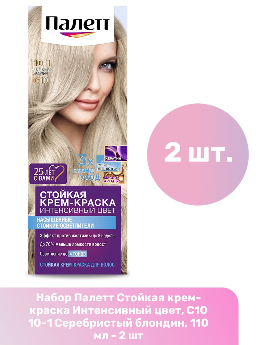 СохранитьPalette Крем-краска стойкая для волос Интенсивный цвет 10-1 Серебристый блондин, 110 мл, 10 шт интересное: