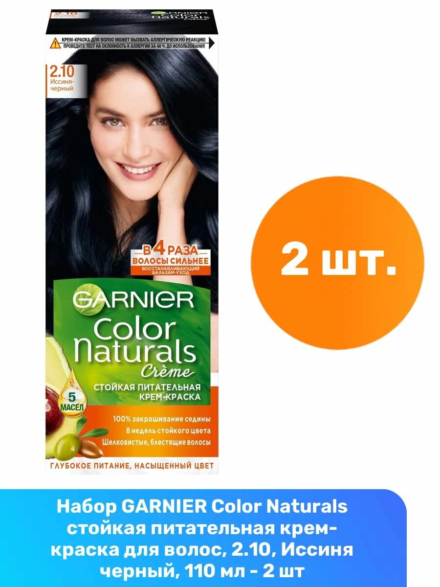 GARNIER Color Naturals стойкая питательная крем-краска для волос, 2.10, Иссиня черный, 110 мл - 6 шт