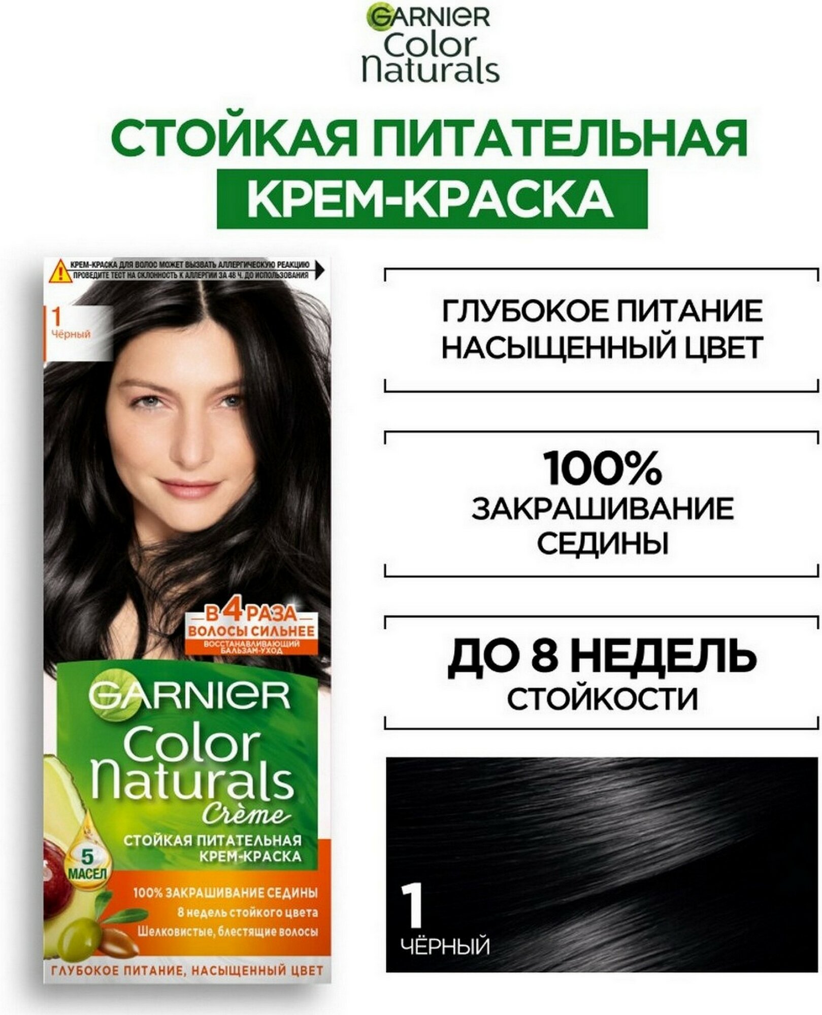 Garnier Стойкая питательная крем-краска для волос "Color Naturals", оттенок 1, Черный, 110 мл