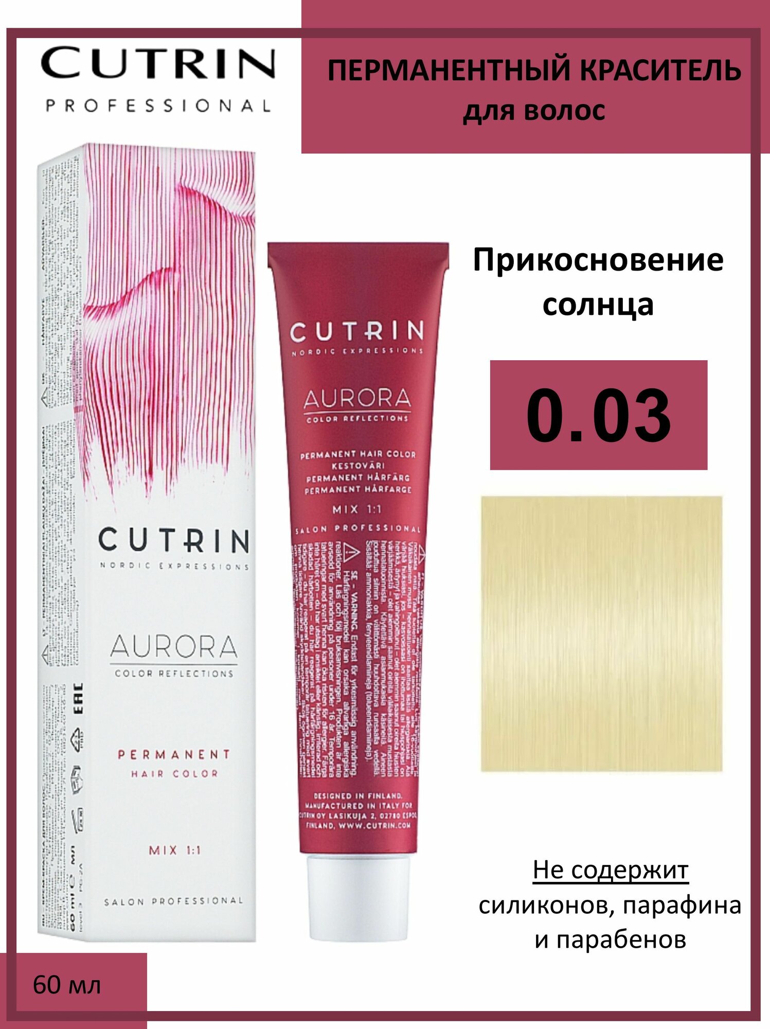 CUTRIN Крем-краска для волос AURORA COLOR REFLECTION 0.01 Серебряная гармония / Стойкая крем-краска для волос Aurora Color Reflection 60 мл
