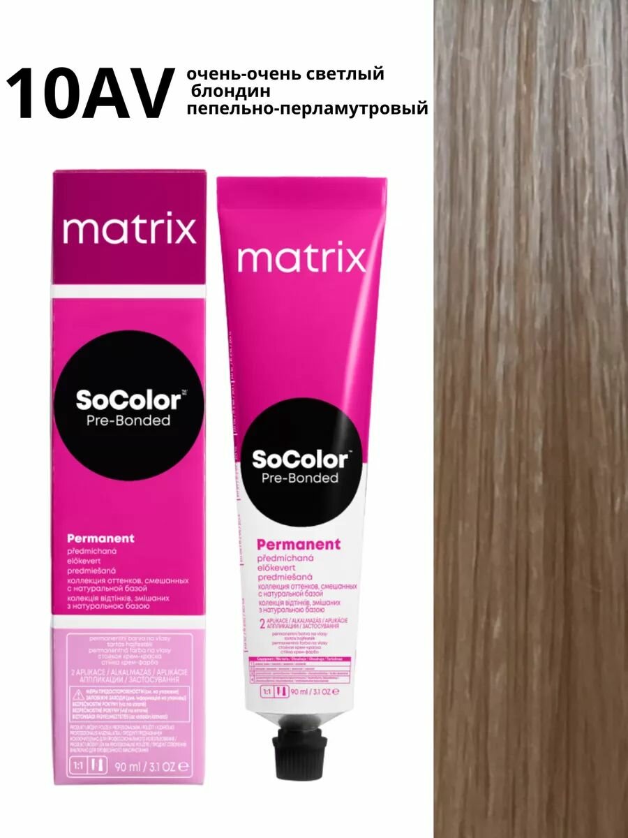 Купить Matrix SoColor перманентная крем-краска для волос Pre-Bonded, 10AV Очень светлый блондин пепельно-перламутровый, 90 мл(оригинал)