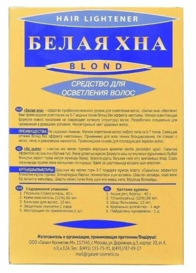 Средство для осветления волос Галант "Белая хна", Блонд, Забота и уход