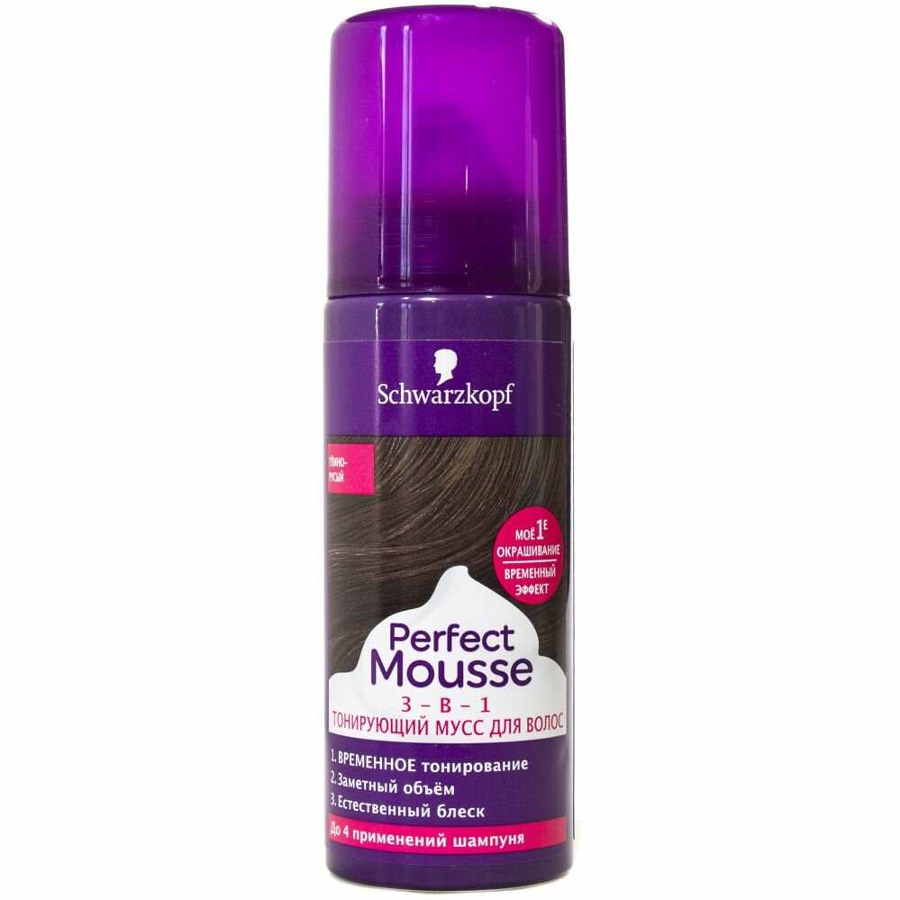 Купить Мусс тонирующий для волос Schwarzkopf Perfect Mousse 3 в 1 Темно-русый 120 мл