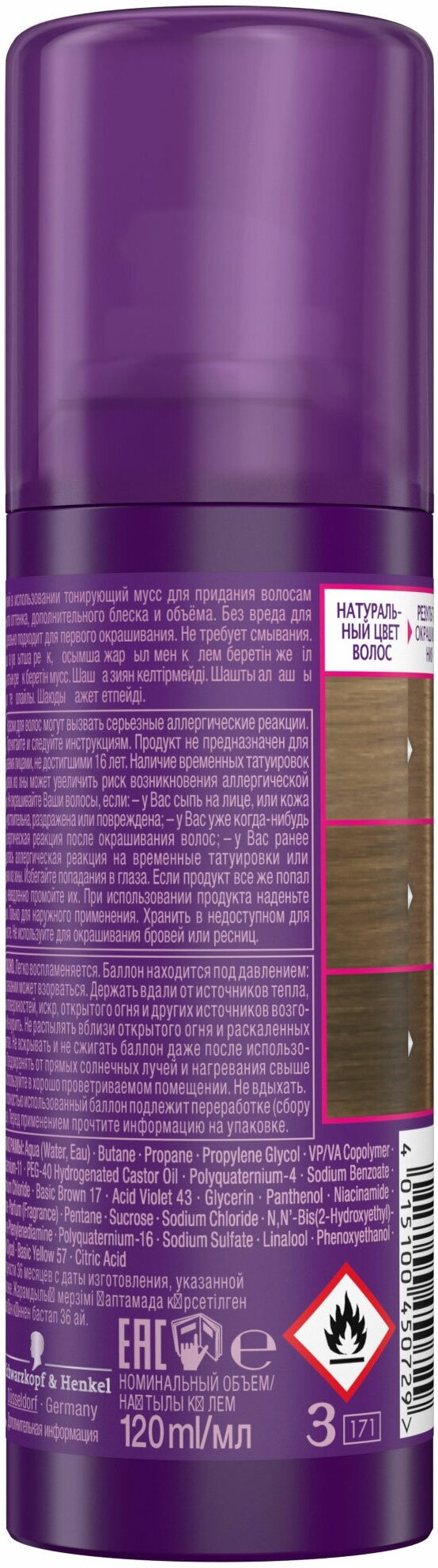Тонирующий мусс SCHWARZKOPF Perfect Mousse 3в1, русый, 120 мл