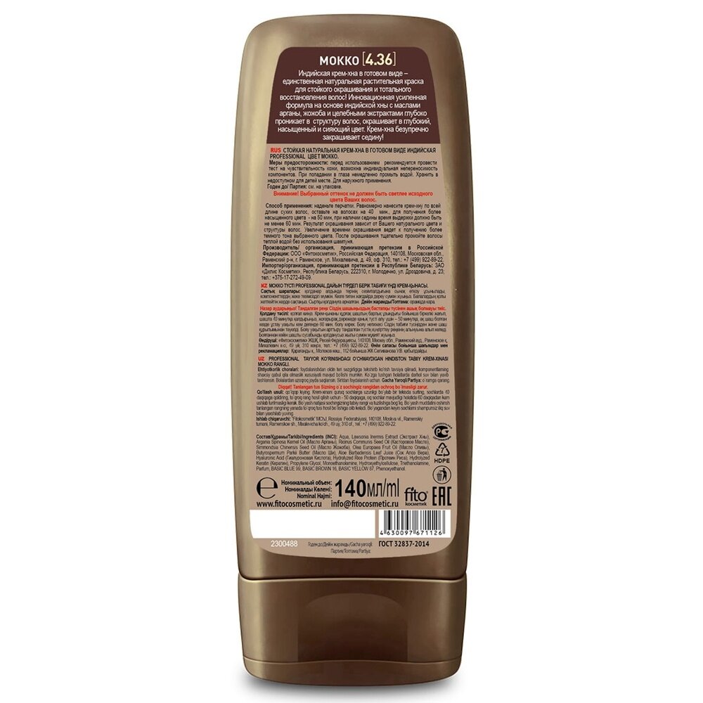 Купить Крем-Хна Индийская Fito Косметик в готовом виде PROFESSIONAL, цвет Мокко, 140 мл.