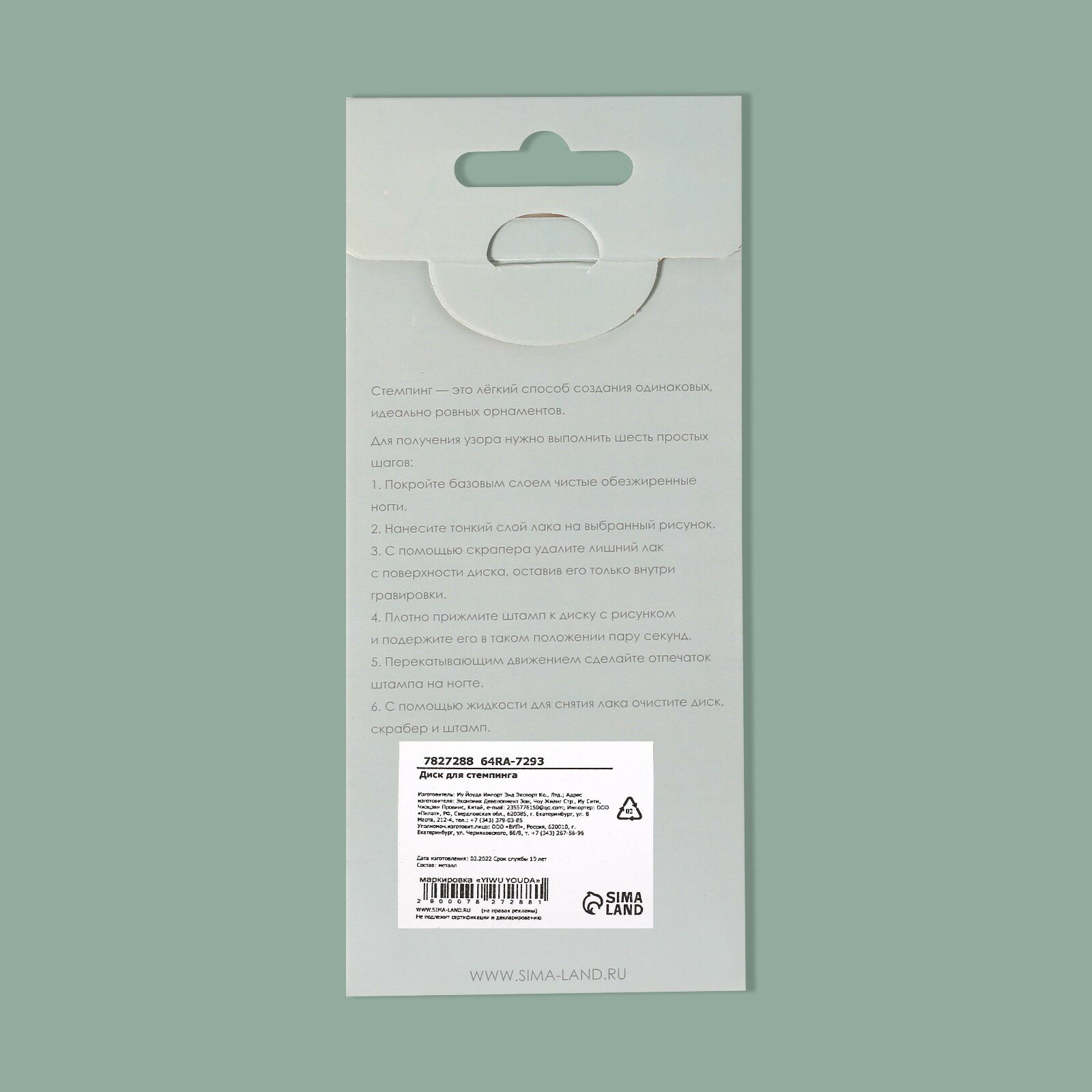 Набор для стемпинга 2пр: штампик 2,2*2,2см, скребок роз пакет QF 1437691