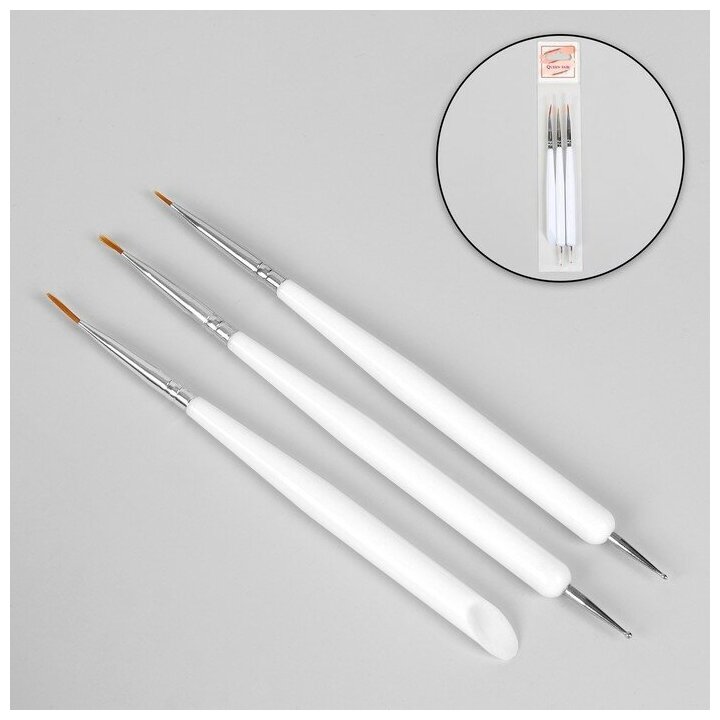 Набор кисть-дотс/кисть-пушер тонкий ворс 3шт 15см бел пакет QF