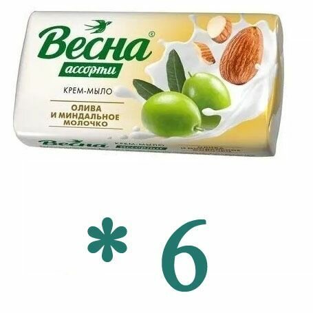 Купить Весна Туалетное мыло Ассорти Олива и Миндальное молочко 90 г. / 6 штук