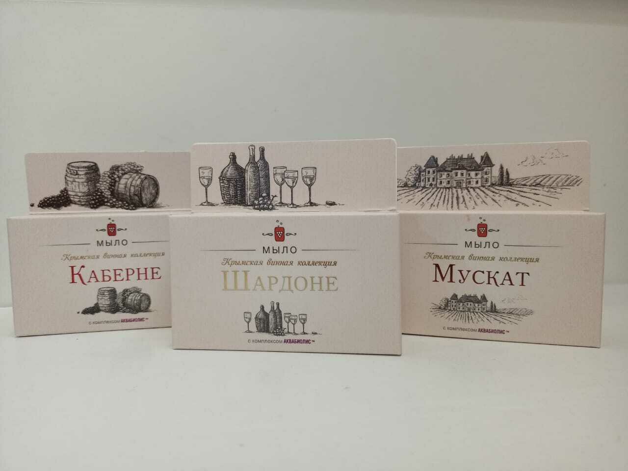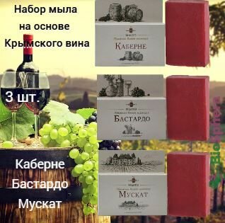 Набор мыла. "Винная коллекция" (Шардоне, Совиньон, Алиготе) на основе вытяжки из целебной грязи Сакского озера. 3 шт.