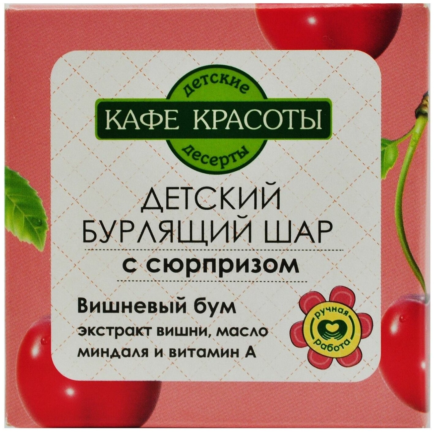 Кафе красоты Шарик для ванны бурлящий с сюрпризом-игрушкой Вишневый бум, 120 г