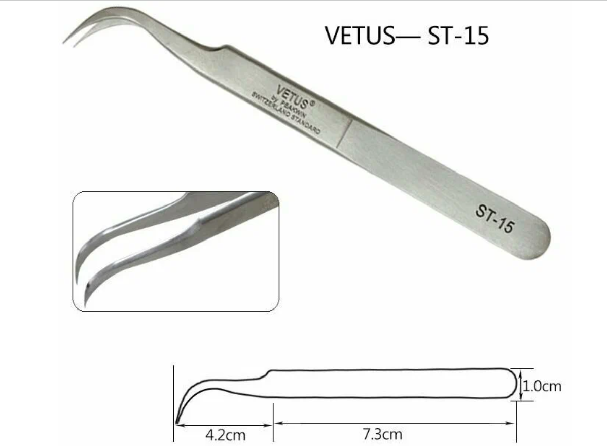 Купить VETUS Пинцет для наращивания ресниц изогнутый ST-15, длина 11,6 см