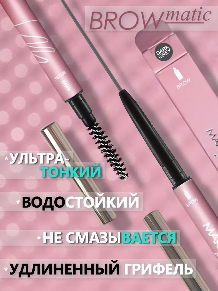 Купить Черно-серый ультра-тонкий выдвижной карандаш для бровей BrowMatic оттенок Dark Grey - для брюнеток