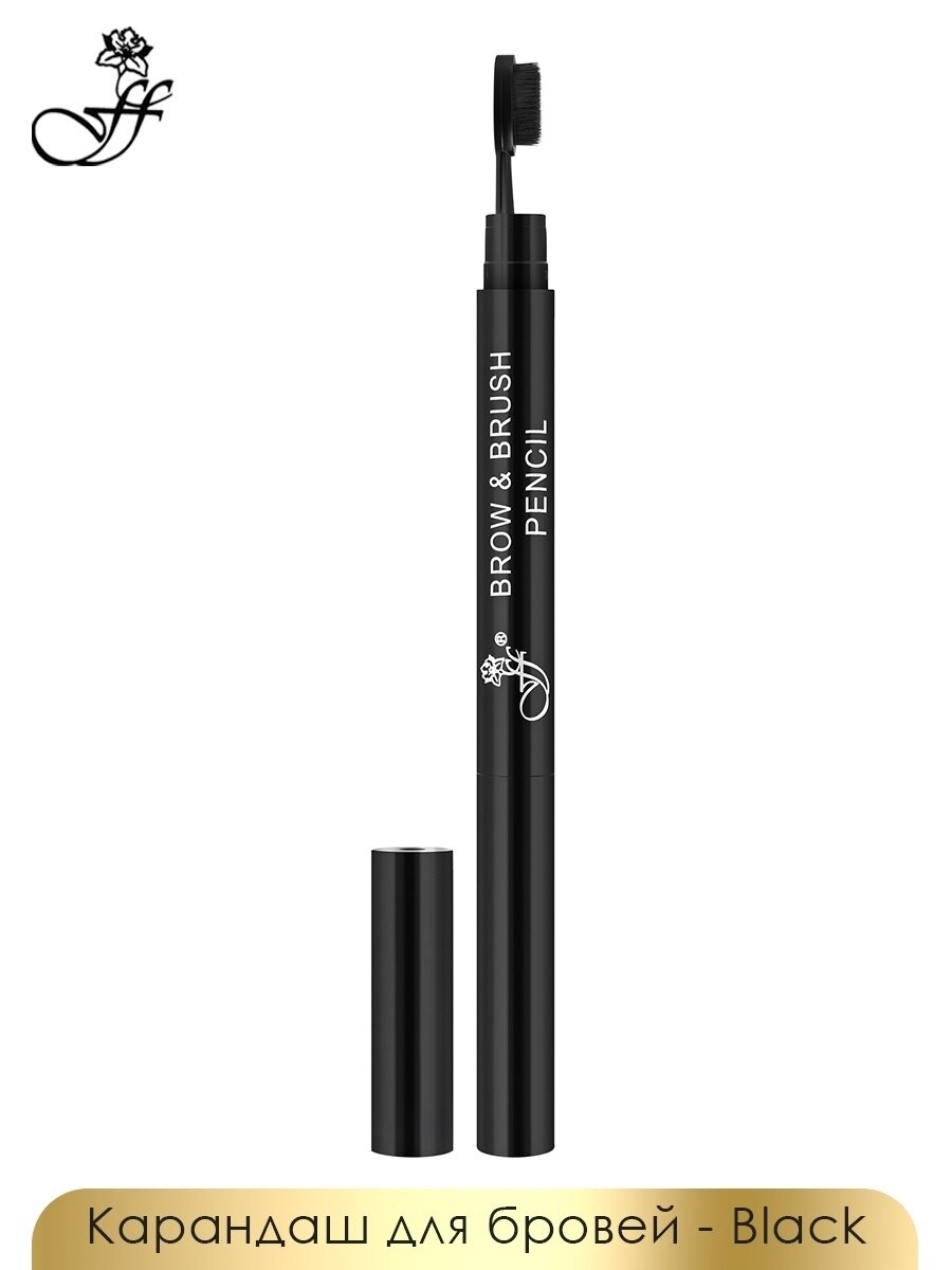 FFleur Карандаш для бровей Brow+Brush Pencil, с щеточкой, Black, 0.3 г