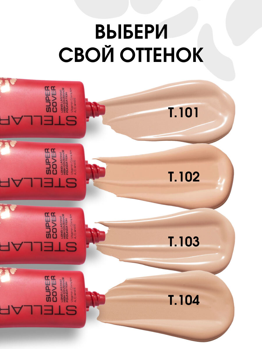 STELLARY Тональный крем для лица Super Cover Foundation выравнивающий, 25 мл, 104 Теплый беж
