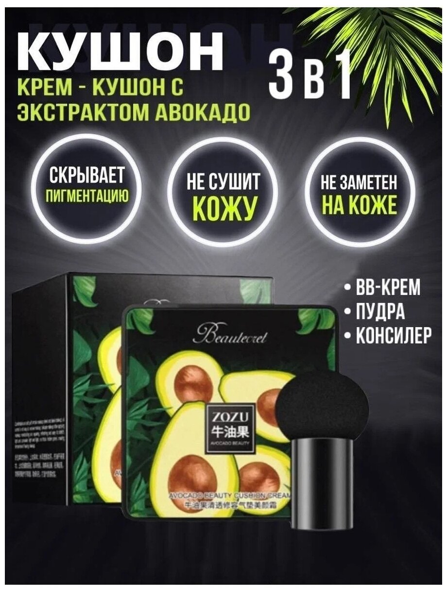 Кушон для лица Zozu с экстрактом авокадо, тон натуральный 20 г . интересное: