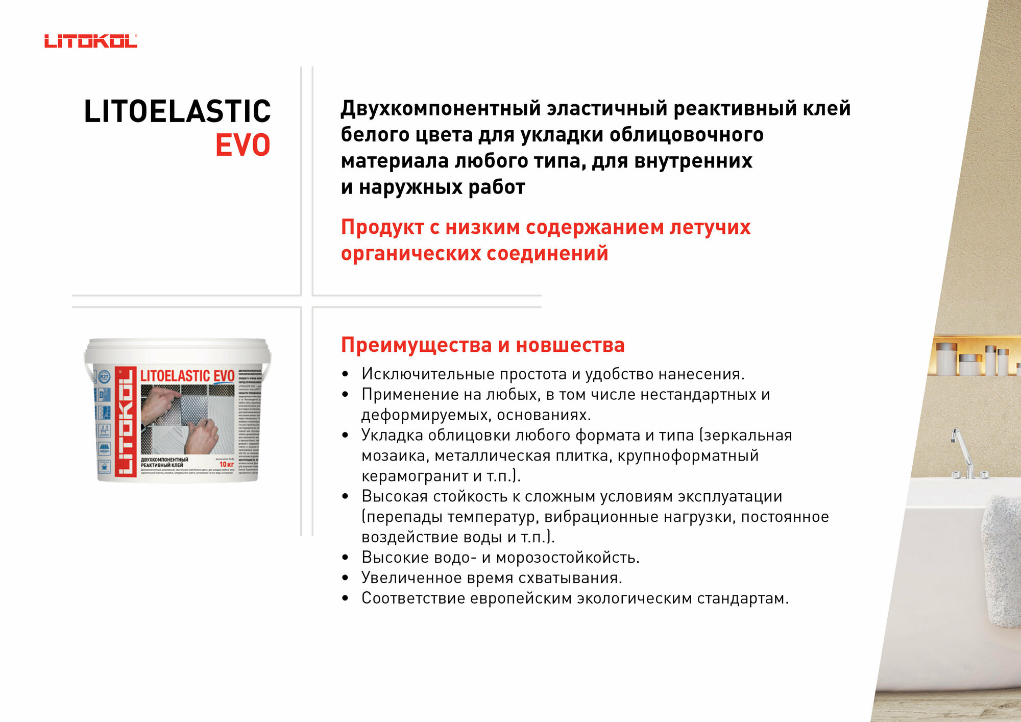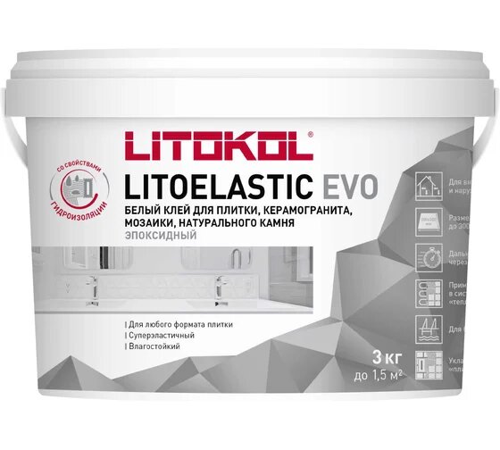 СохранитьКлей реактивный двухкомпонентный для плитки и камня LITOKOL LITOELASTIC EVO 3 кг интересное: