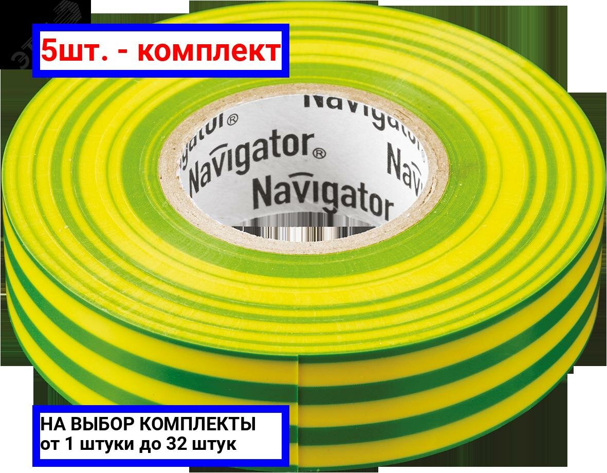 5шт. - Изолента ПВХ желто-зеленая 15мм 20м / Navigator Group; арт. 71108; оригинал / - комплект 5шт