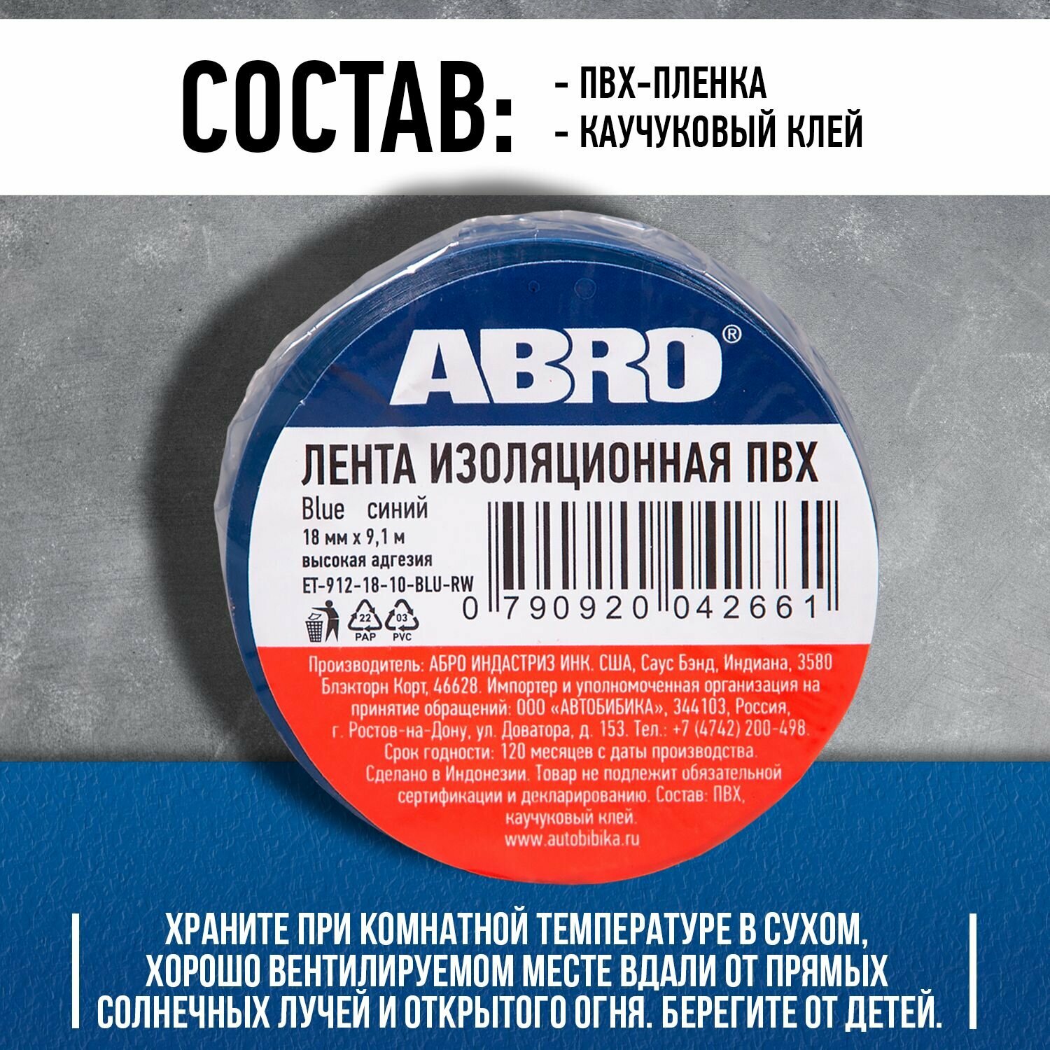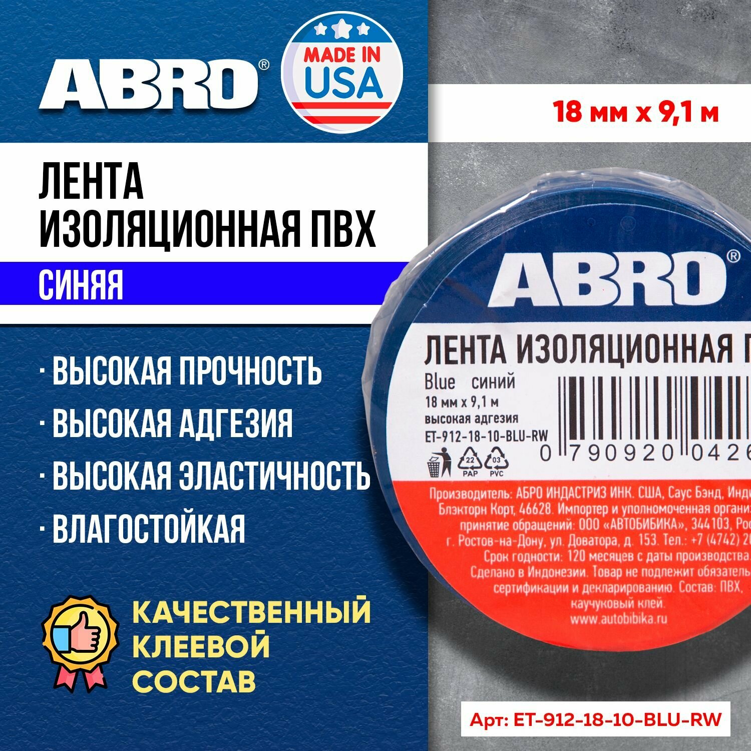 ABRO 'ET912RBLUE Изолента абро синяя 18 мм*9,1 м 3шт