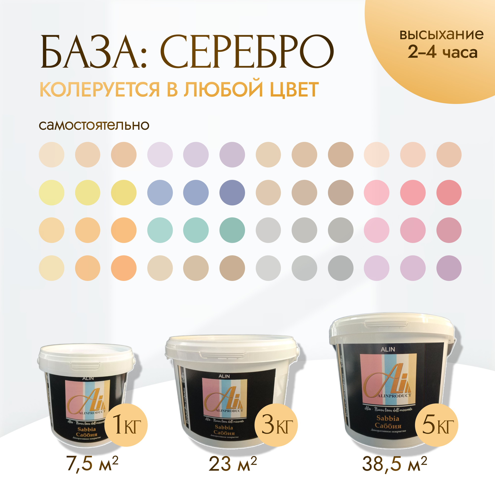Краска ALINPRODUCT Саббия классик серебро - для имитации песчаной поверхности со стеклошариками, цвет серебристый 3кг
