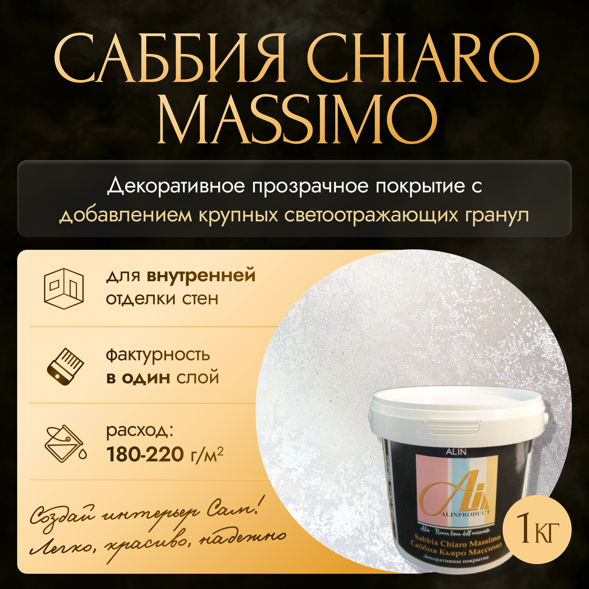 Краска, декоративное покрытие ALINPRODUCT Саббия Sabbia (Кьяро Массимо Chiaro Massimo), прозрачная 3 кг