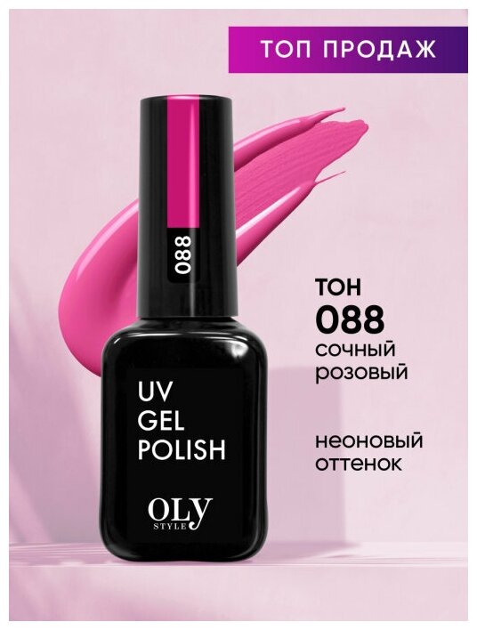 Купить Olystyle Гель-лак для ногтей OLS UV, тон 088 сочный розовый, 10мл