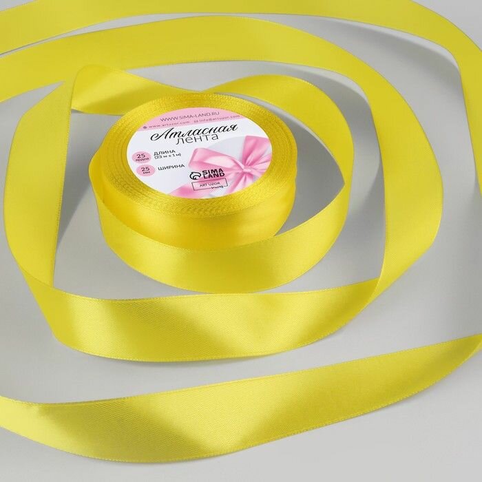 Купить Лента атласная, 25 мм х 23 м, цвет желтый, номер 15
