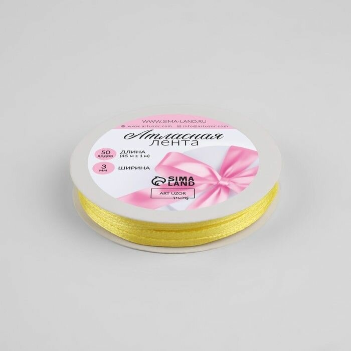 Купить Лента атласная, 3 мм х 45 м, цвет желтый, номер 15