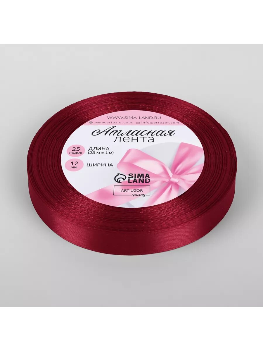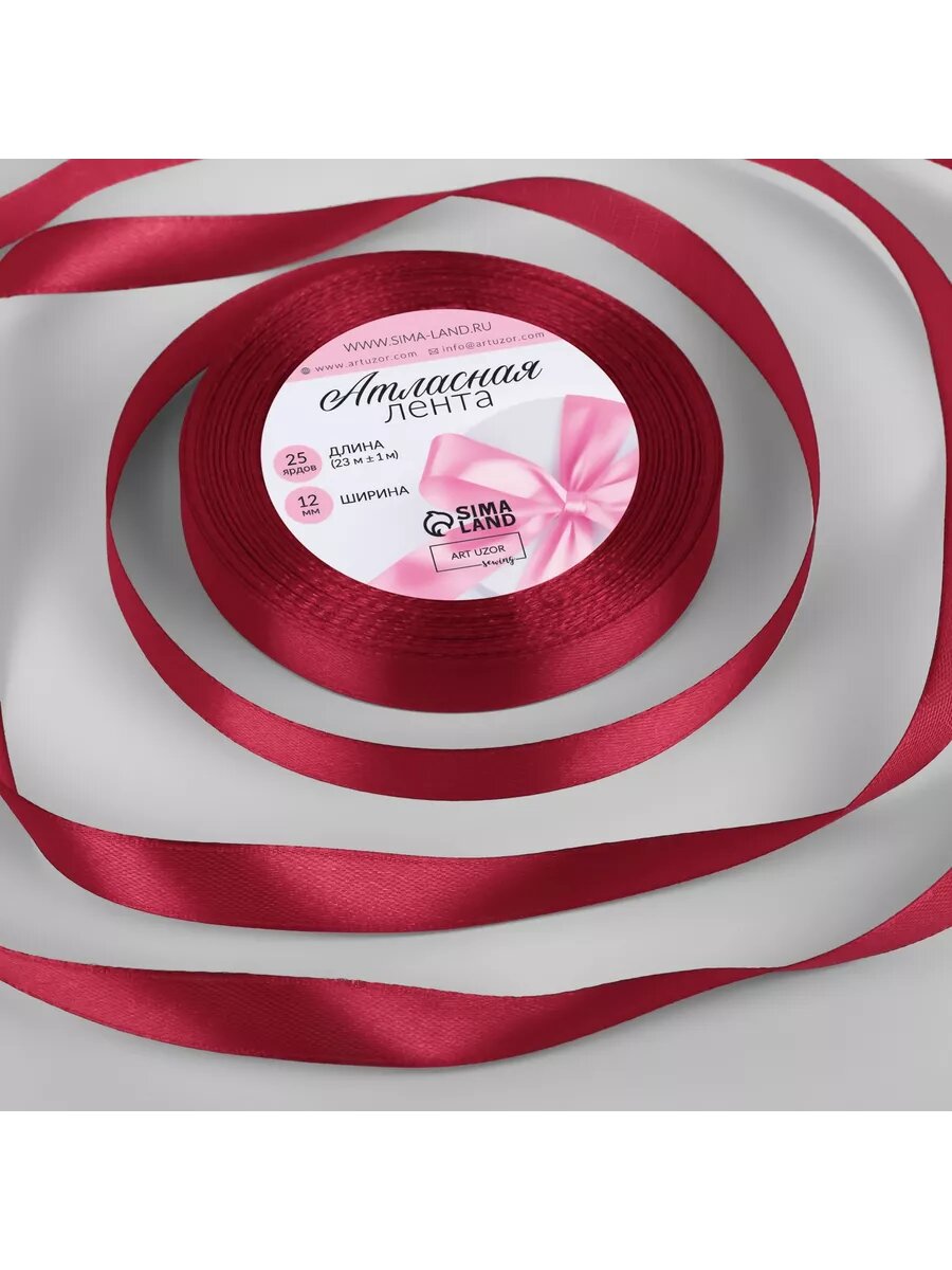 Арт Узор Лента атласная, 12 мм × 23 ± 1 м, цвет малиново-красный №120