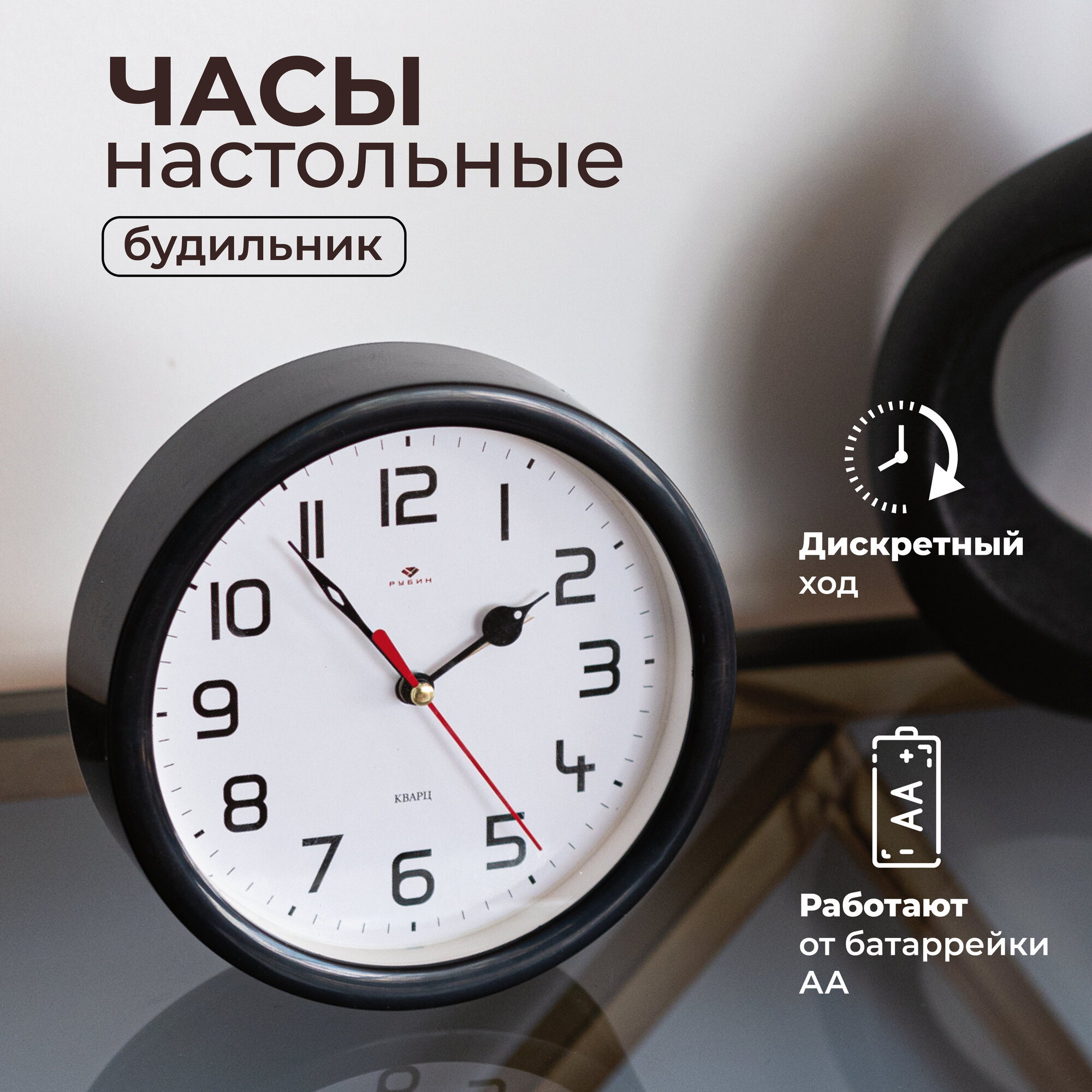 СохранитьБудильник Рубин "Классика" настольный, d 15 см, круглый, крупный циферблат, арабские цифры, кварцевый механизм, корпус чёрный, часы-будильник интересное: