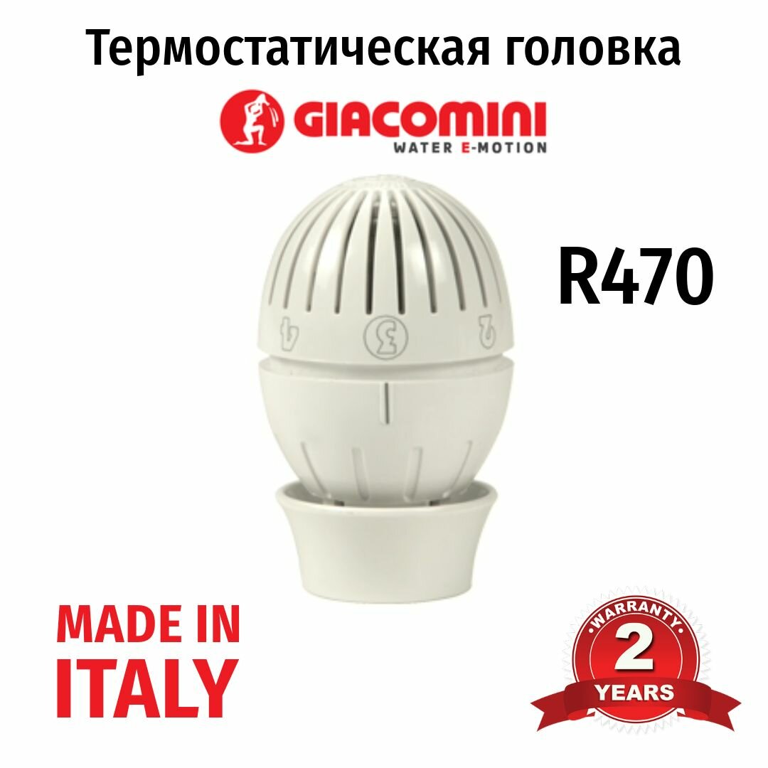 Термостатическая головка R470, с жидкостным элементом, крепление Clip-clap, Giacomini R470X001