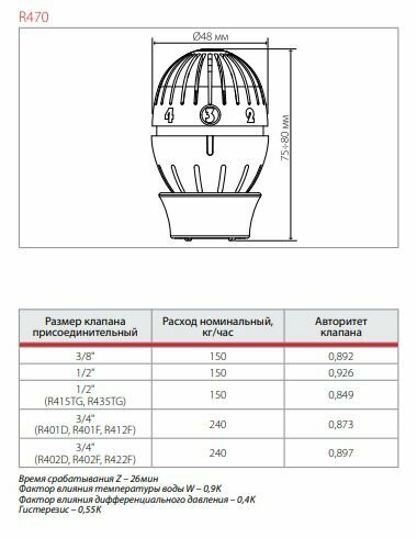 | Диаметр термостатической головки | 50 мм |