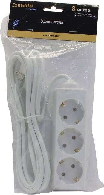 Удлинитель ExeGate ECE-3-3W (3 евророзетки с заземлением, 3м, белый)
