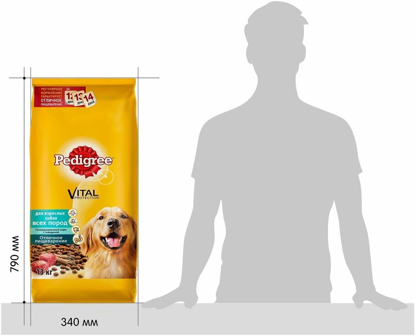 Корм сухой Pedigree для взрослых собак всех пород, с говядиной, 13 кг