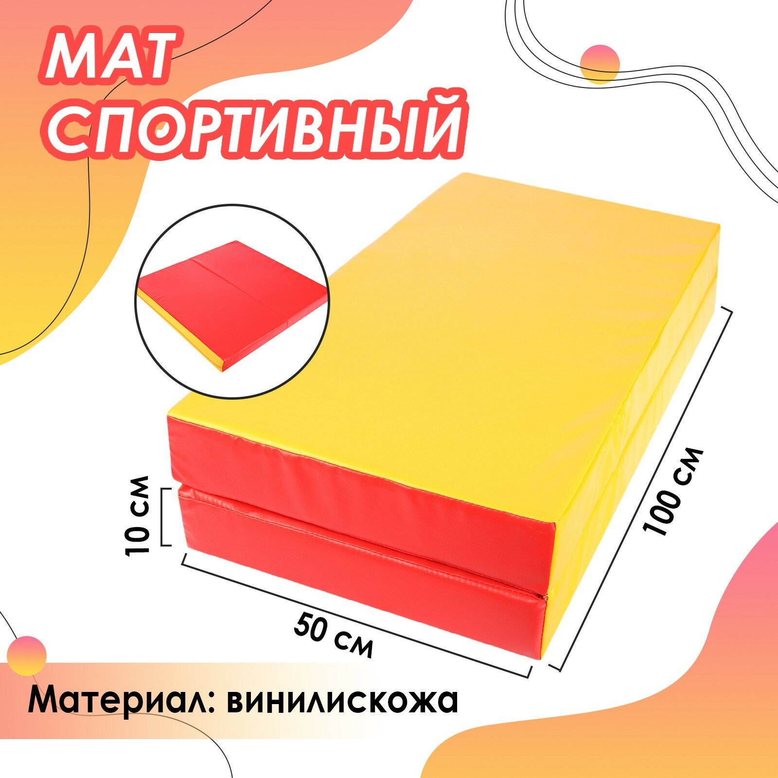 Мат ONLITOP 100х100х10 см, 1 сложение, винилискожа, красный-желтый