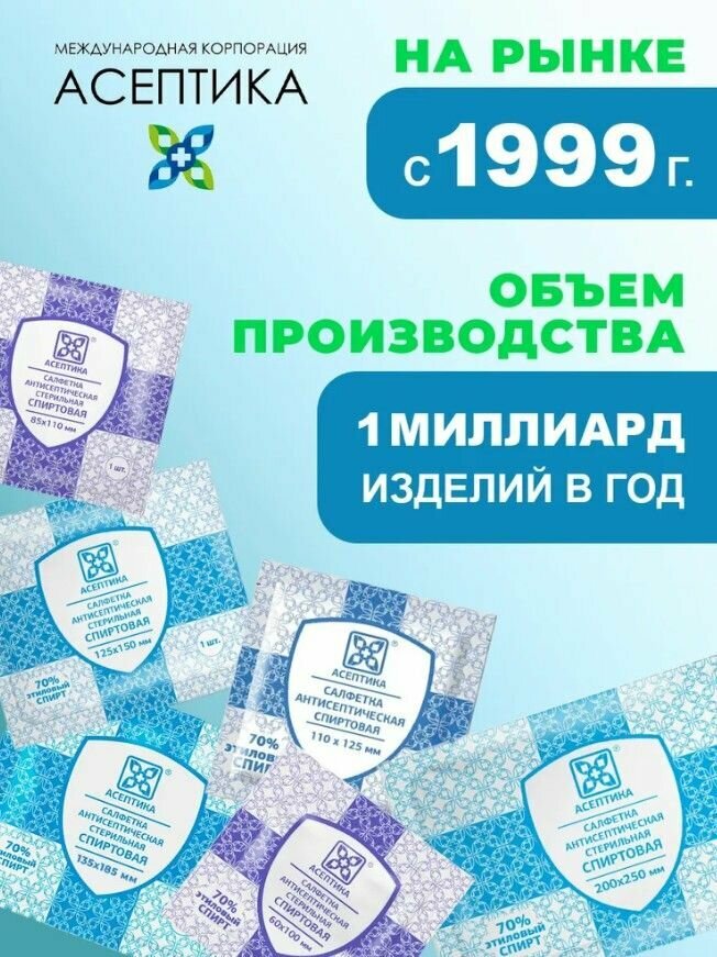 Салфетка спиртовая, антисептическая, этил. сп. 200х250мм асептика 60шт/уп, 1559958
