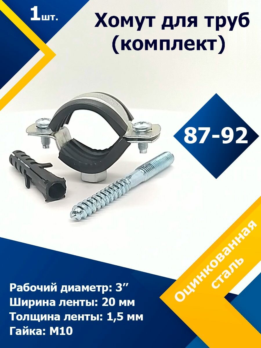 Купить Хомут обрезиненный для труб (комплект) 3'' дюйма (87-92 мм) М10 (1 шт.)