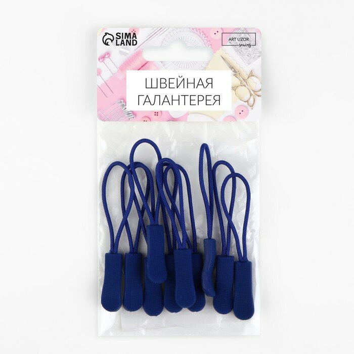 Пуллер для молнии, 2,5 см, 6 × 0,8 см, 10 шт, цвет тёмно-синий