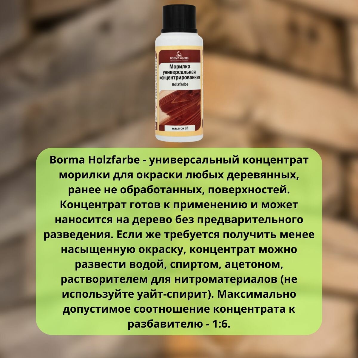Ниже Вы можете прочитать отзывы на Морилка на основе растворителя BORMA HOLZFARBE 250мл Махагон 62 3000MO, ознакомится с подробными характеристиками, посмотреть интересные обзоры и фотографии на Морилка на основе растворителя BORMA HOLZFARBE 250мл Махагон 62 3000MO.