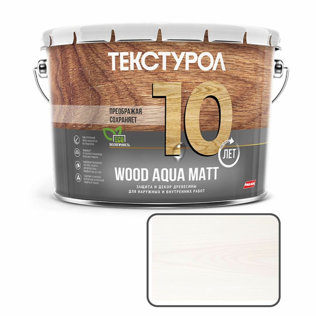 Деревозащитное средство на водной основе Текстурол WOOD AQUA MATT белый 10л Лк-00008236