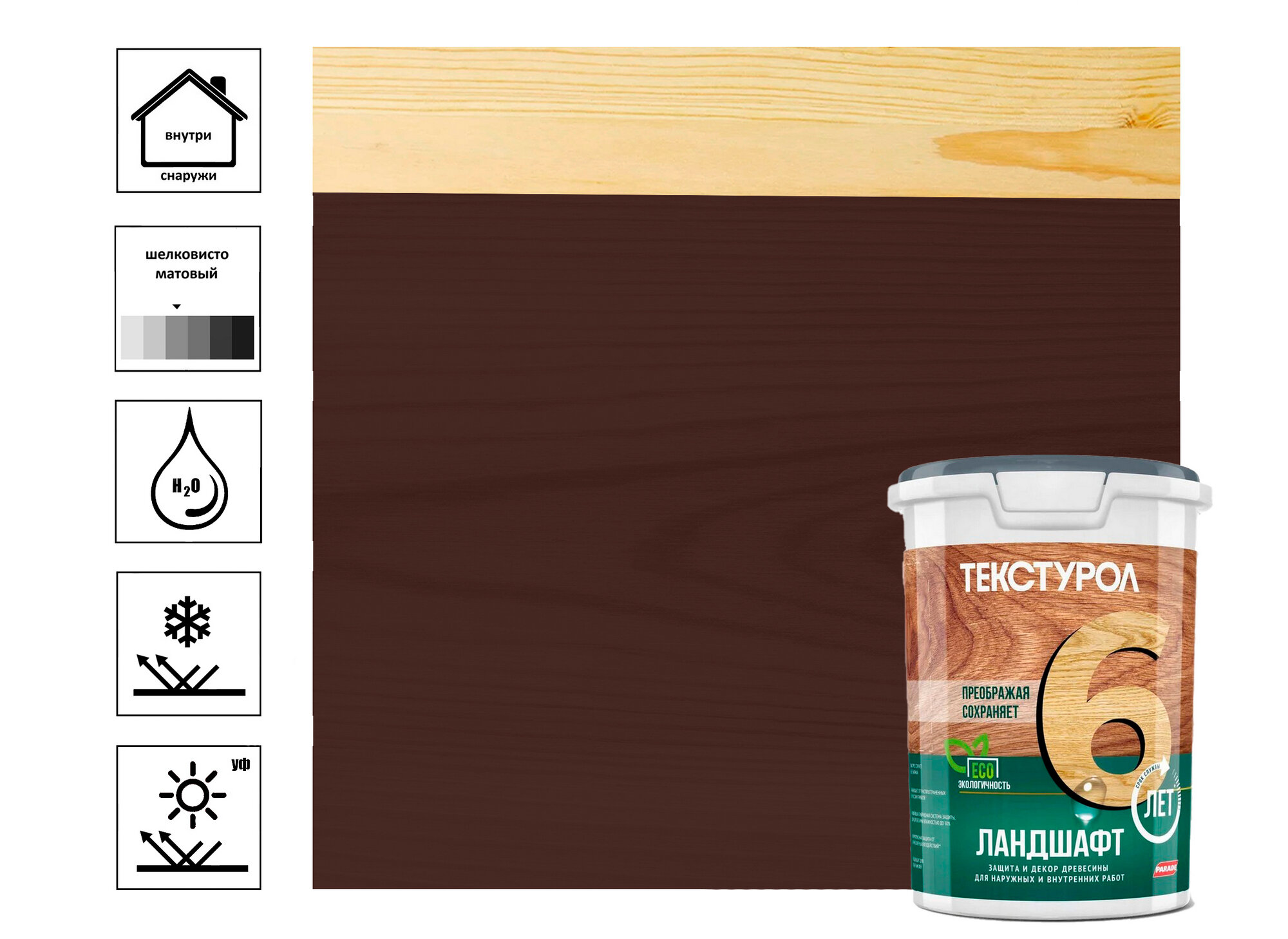 Защитное покрытие для древесины Ландшафт Текстурол 9 л палисандр шелковисто-глянцевая