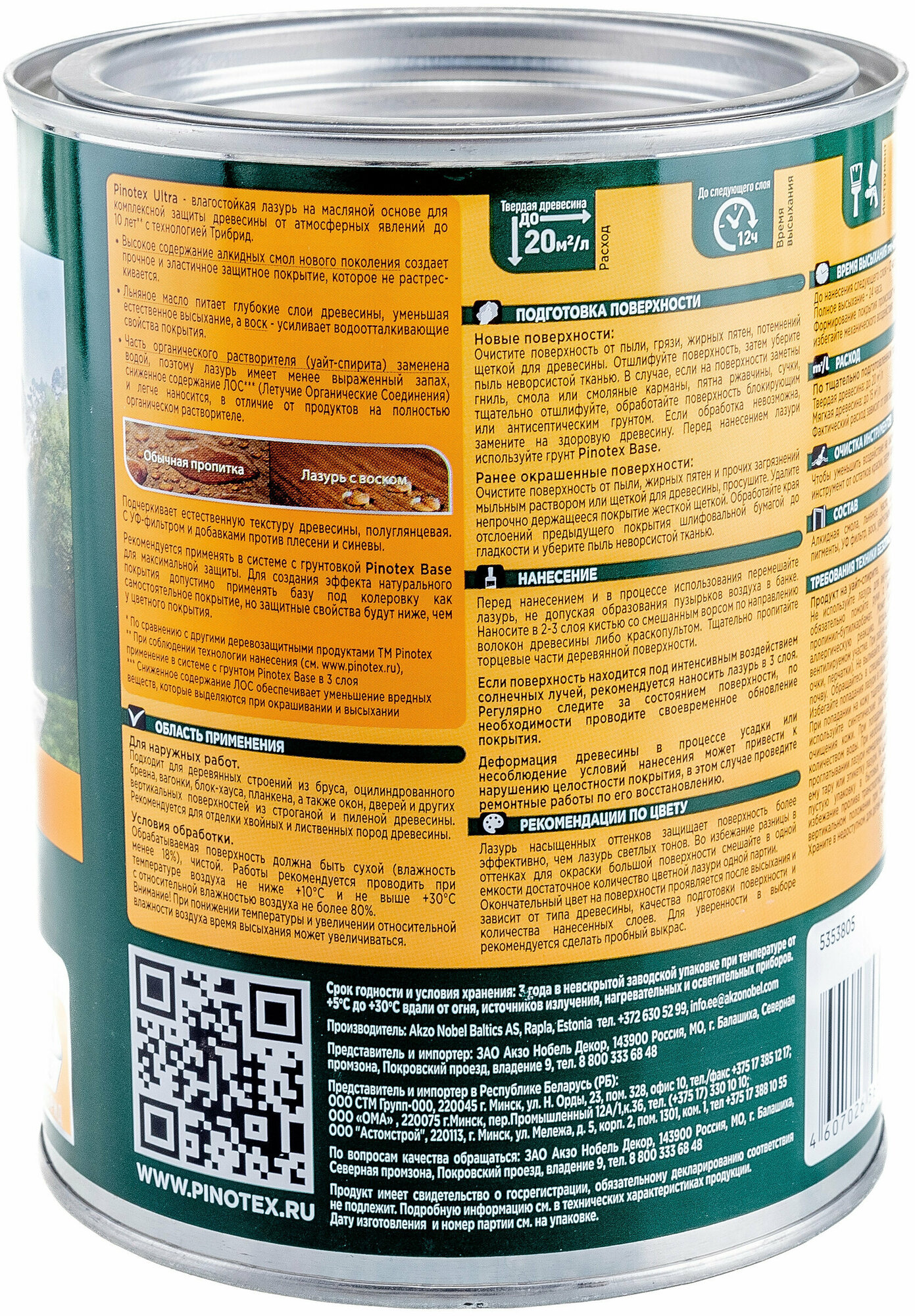 Лазурь влагостойкая PINOTEX ULTRA RU сосна 0,9 л