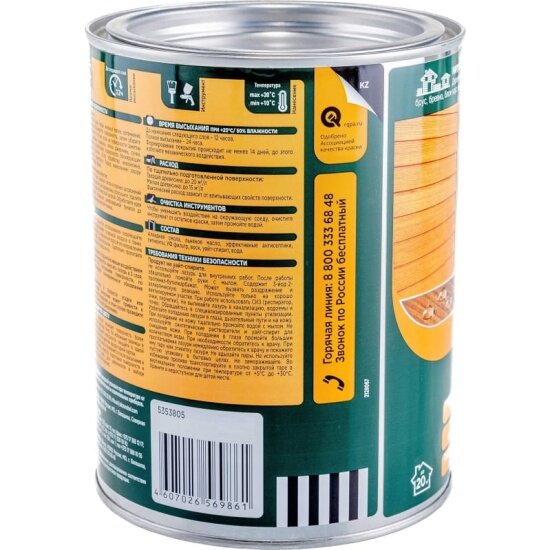 | Плюсы: | Даёт супер защиту для дерева . Усилен воском . Собираемся дать ещё один слой , т.е. немного освежить после 10 лет использования . |