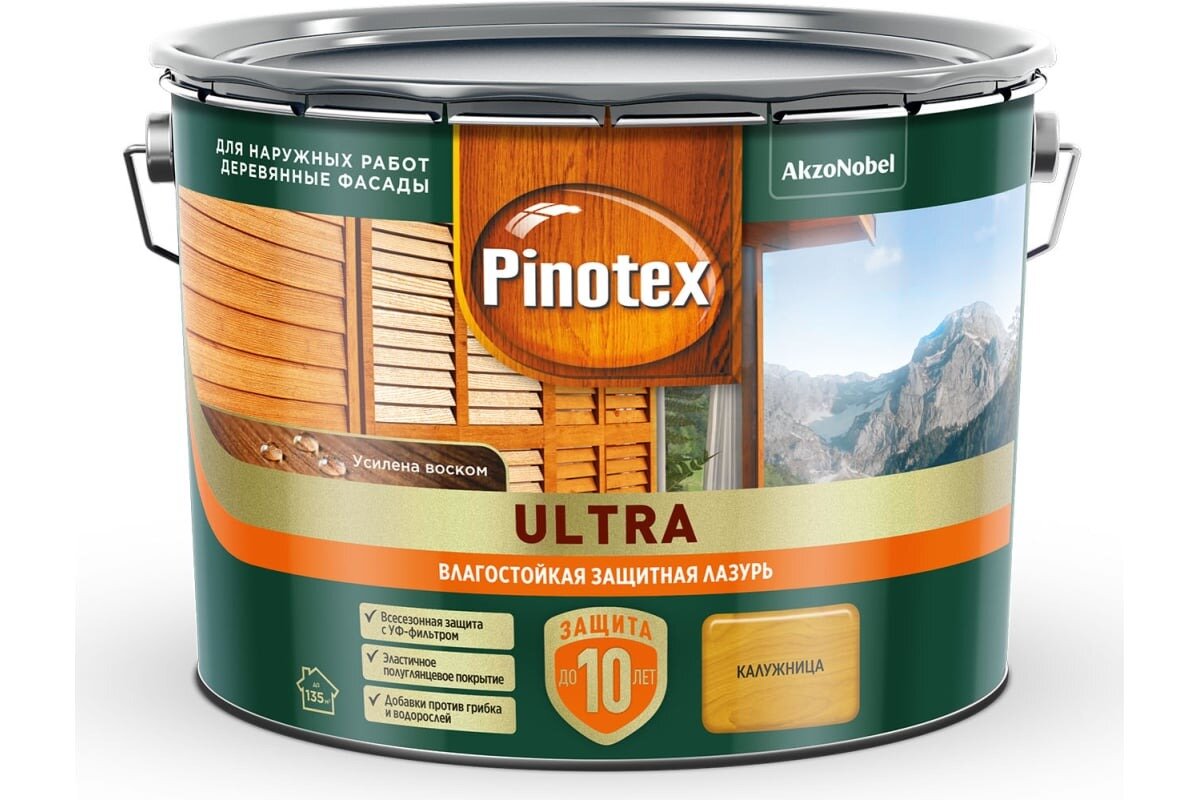 PINOTEX ULTRA лазурь защитная влагостойкая для защиты древесины до 10 лет калужница (2,5л)