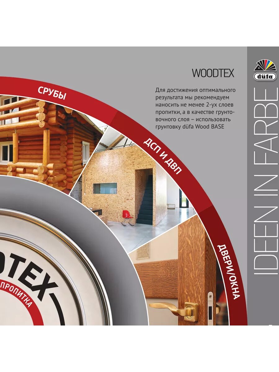 Пропитка декоративная Dufa Woodtex (Вудтекс) для защиты древесины Рябина 10 л