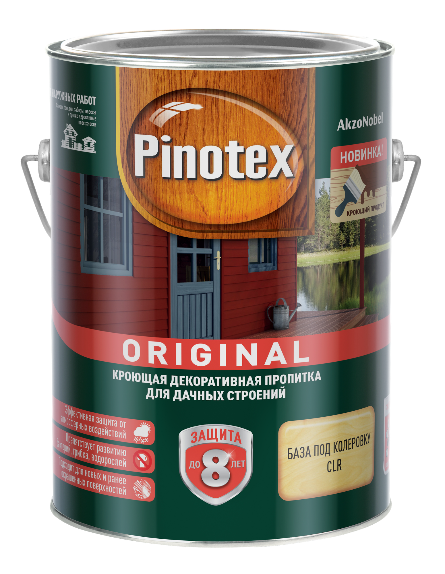 PINOTEX ORIGINAL пропитка декоративная кроющая для дачных строений и OSB, база CLR (8,4л)
